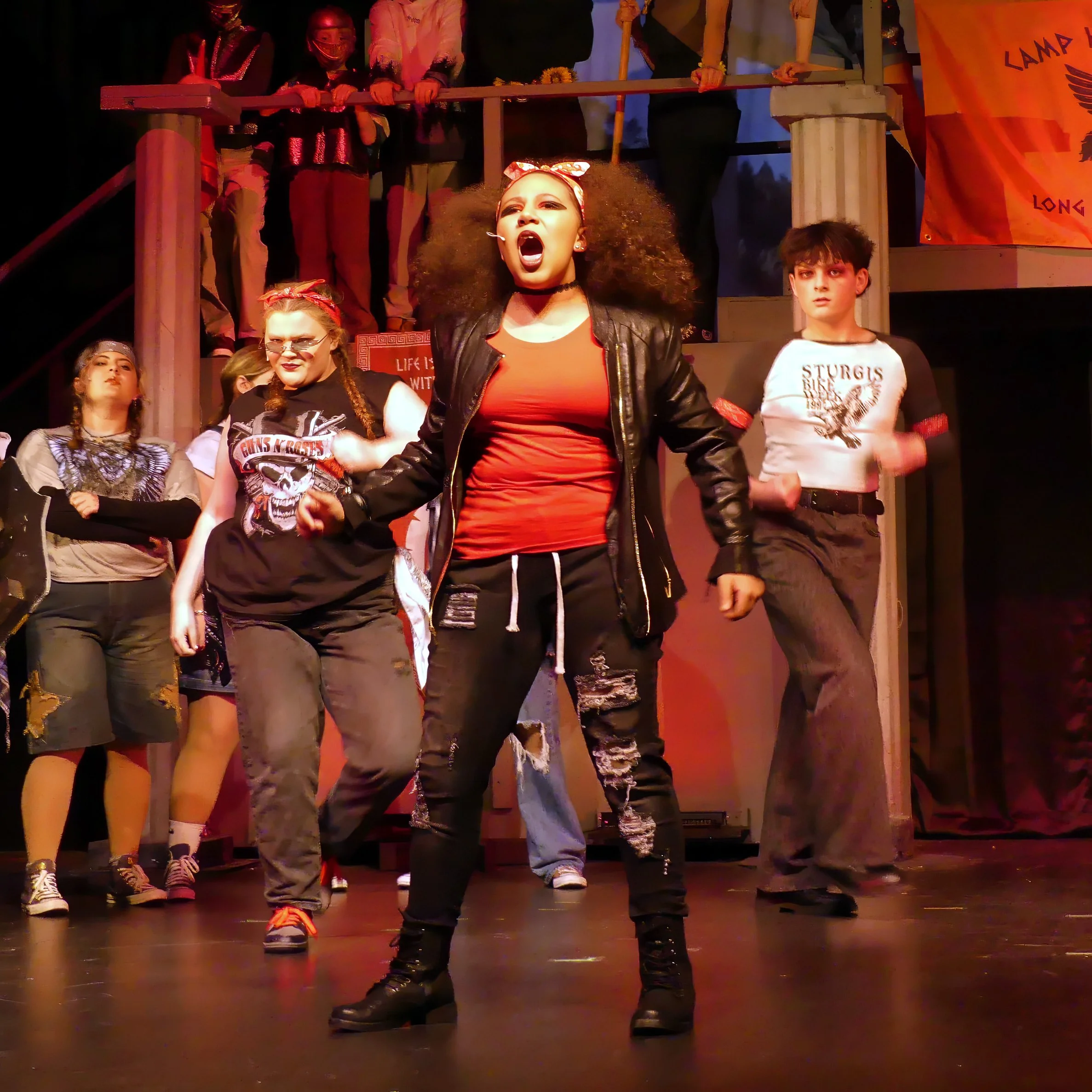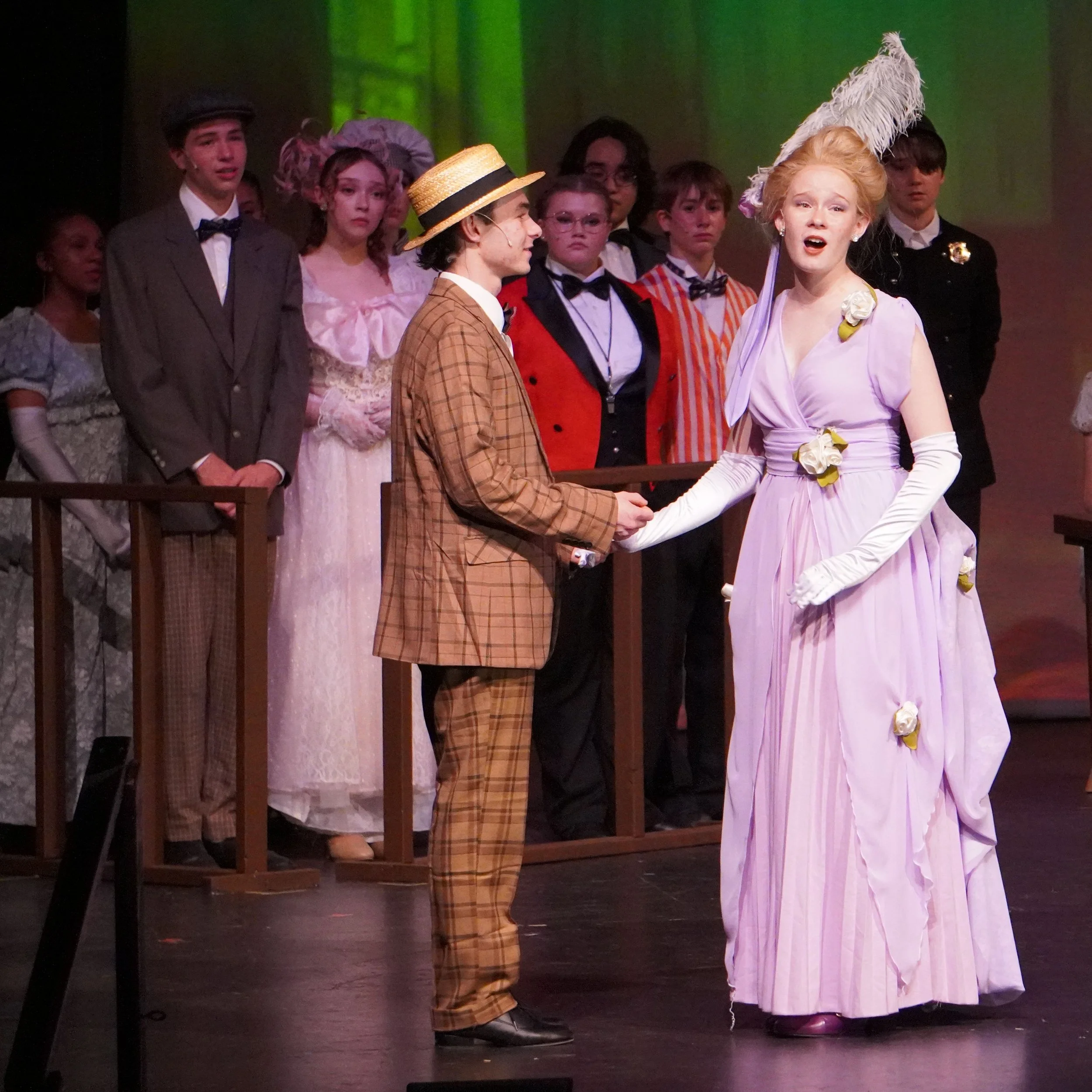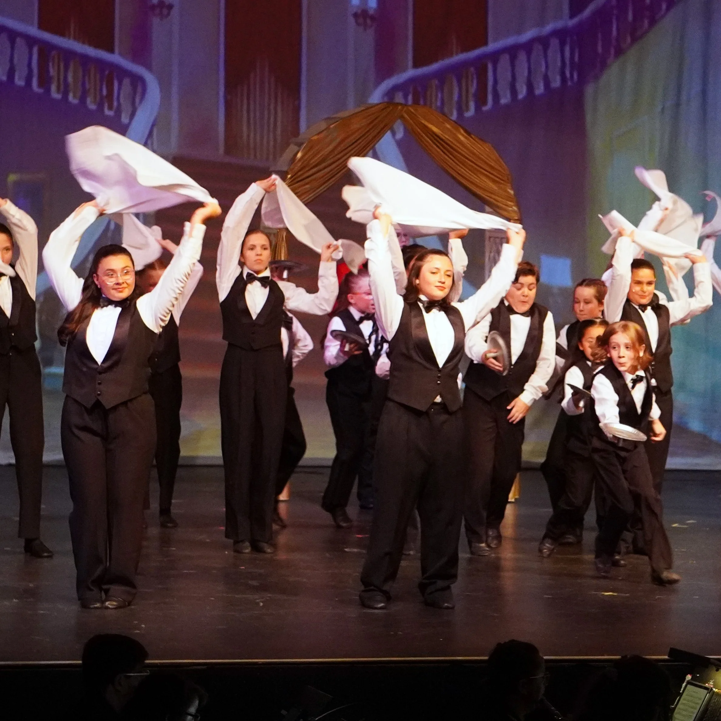 Live orchestra. Full costumes. Real sets. Eight public performances. Our productions are the genuine article — and your kid is the one making them happen.
